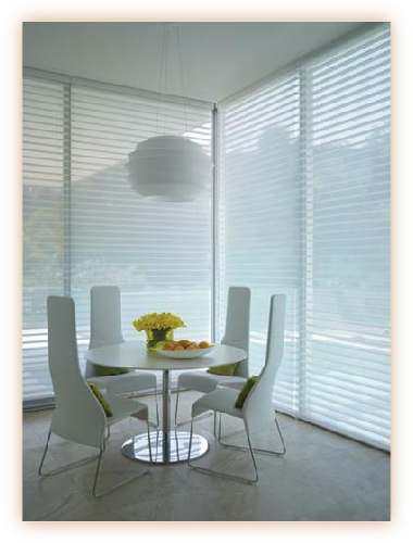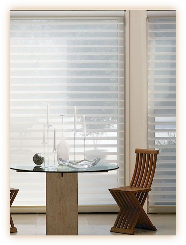 Grayson Blinds is as light as silk, decorative as a curtain and as practical as a Venetian blind. Open Blind give a softly filtered, unobstructed view through the window. Closed they offer total privacy and protection whilst allowing light to gently filter into the room. Combining the soft sheerness of a shade and the functional control of a horizontal blind, this Blind has a centre vane which can be adjusted to guarantee the perfect amount of light or privacy.