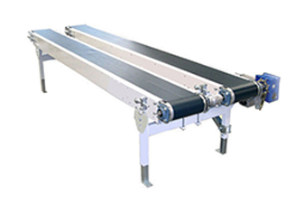 Belt conveyor systems are the most versatile and simplest material handling systems. Two or more pulleys drive an endless loop belt, smoothly and quickly moving a product from point A to point B. Belts are fabric or rubber, and they are commonly used in both manufacturing and distribution facilities. Belt conveyors are also manufactured with curved, Inclined (Z type) in industries.