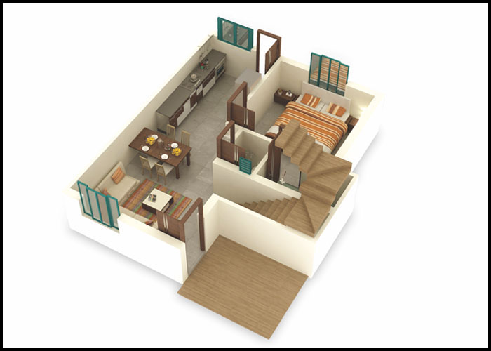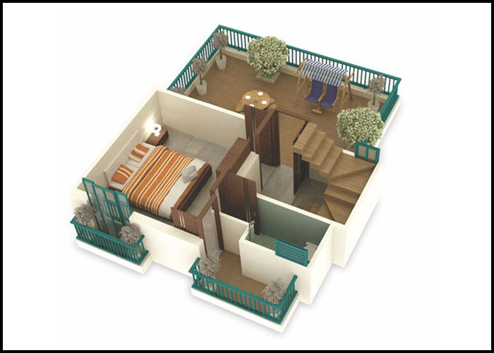 2bhk First Floor Plan(3D)