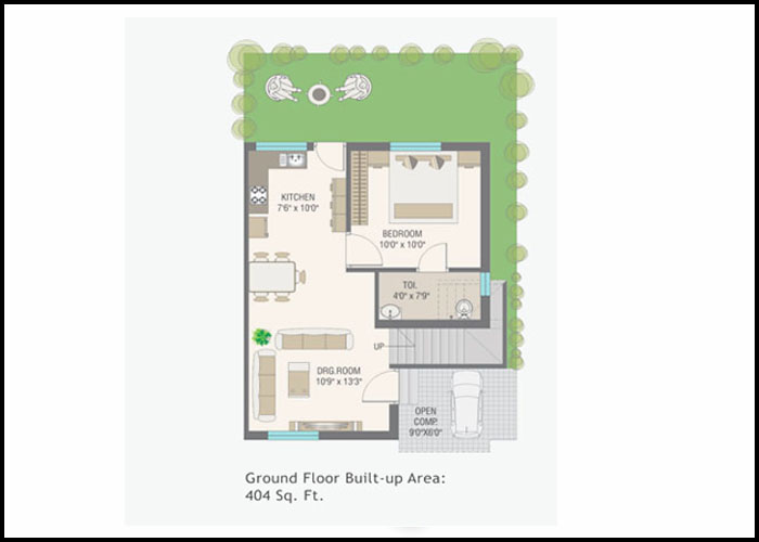2bhk Ground Floor Plan(3D)